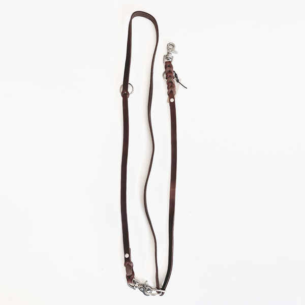 14mm breite Führleine aus geschmeidigem Fettleder mit Edelstahl – Scherenkarabiner. Ideal auch als Umhängeleine, 3-fach verstellbar.